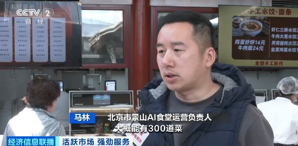 北京市景山AI食堂运营负责人 马林:机器人系统里大概能有300道菜,我们每周都会更新菜谱。大概有三分之一食客是周边的居民,老年人占大部分。